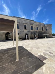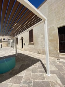 Nella piazza antistante il palazzo baronale di Martano Sprech ha installato delle pergole autoportanti della linea Beach System.